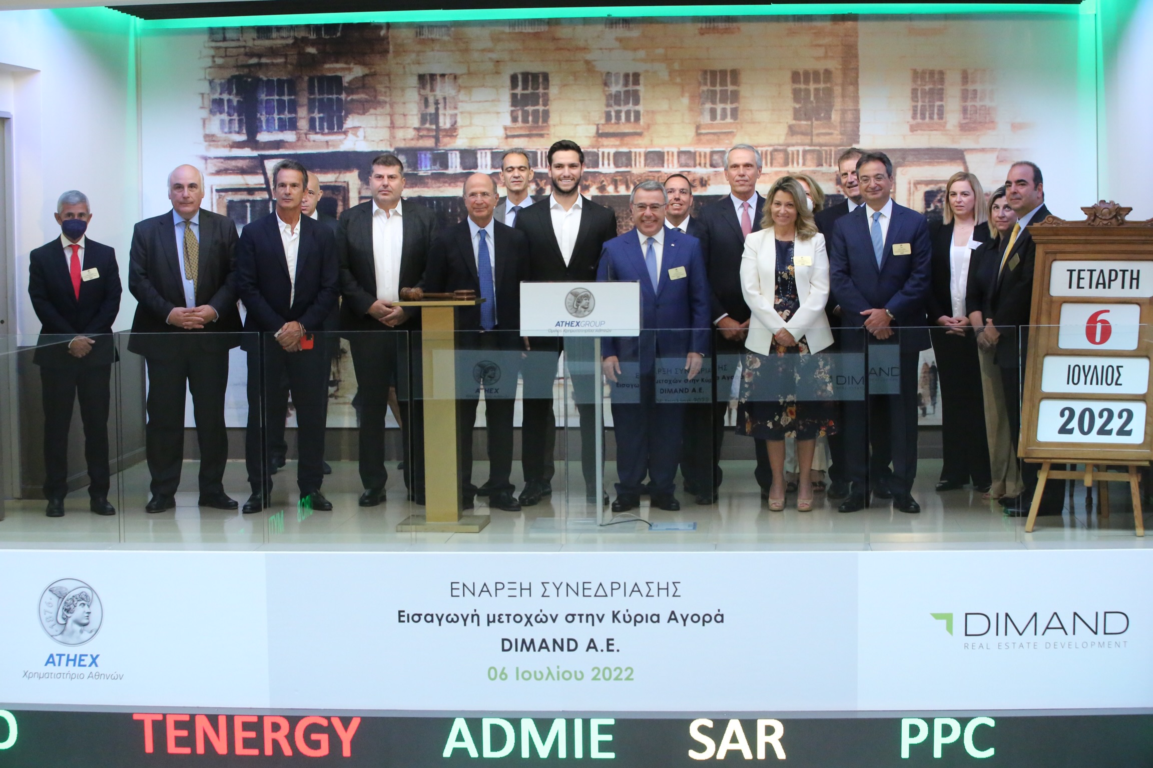 «Με ιδιαίτερη χαρά βρισκόμαστε σήμερα εδώ, την πρώτη ημέρα διαπραγμάτευσης στο Χρηματιστήριο Αθηνών. Σε ένα τέτοιο περιβάλλον διεθνούς αβεβαιότητας, νομίζω ότι αποτελεί απόδειξη των ισχυρών προοπτικών της DIMAND A.E. το γεγονός ότι πρόκειται για την πρώτη ουσιαστική μεγάλη εισαγωγή από το 2007», τόνισε κατά τον χαιρετισμό του ο CEO του Ομίλου Alpha Bank Βασίλης Ψάλτης προσθέτοντας: «Η σχέση μας με τη DIMAND δεν περιορίζεται στον ρόλο του Συμβούλου Έκδοσης και Συντονιστή - Κύριου Αναδόχου. Ως η κύρια τράπεζα συνεργασίας, έχουμε διοργανώσει χρηματοδοτήσεις άνω των 250 εκατ. ευρώ για εμβληματικά έργα αστικών αναπλάσεων και ανάπτυξης ακινήτων και έχουμε υποστηρίξει όλη την αναπτυξιακή πορεία της εταιρείας μέχρι και σήμερα. Από τη δική μας πλευρά, δεσμευόμαστε να στηρίξουμε και άλλα τέτοια success stories, που συμβάλλουν στην εμβάθυνση της ελληνικής κεφαλαιαγοράς και θέτουν την ελληνική οικονομία σε τροχιά βιώσιμης ανάπτυξης. Συγχαρητήρια σε όλους γι΄ αυτό το μεγάλο εγχείρημα.»