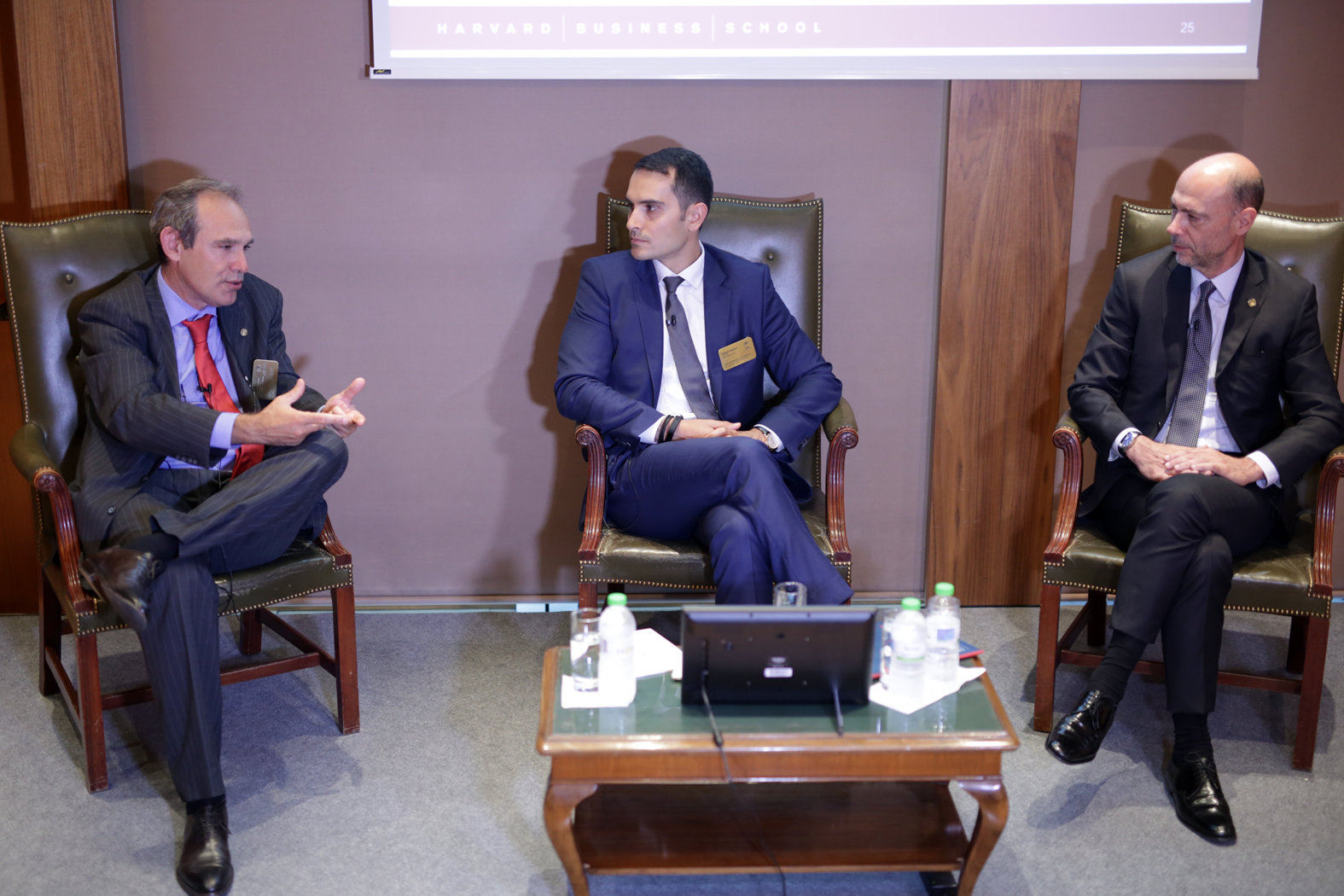 Ακολούθησε συζήτηση μεταξύ του Διευθύνοντος Συμβούλου του Χρηματιστηρίου Αθηνών, κ. Σωκράτη Λαζαρίδη, του Προέδρου του Ελληνοαμερικανικού Επιμελητηρίου, κ. Σίμου Αναστασόπουλου και του Αναπληρωτή Καθηγητή του Harvard Business School, κ. Γεωργίου Σεραφείμ, σχετικά με τους τρόπους υιοθέτησης των βέλτιστων πρακτικών από τις ελληνικές επιχειρήσεις αλλά και από οργανισμούς του δημοσίου τομέα προκειμένου να αναπτυχθούν στο ισχύον περιβάλλον αβεβαιότητας και να συμβάλλουν στην ανάκαμψη της ελληνικής οικονομίας.
