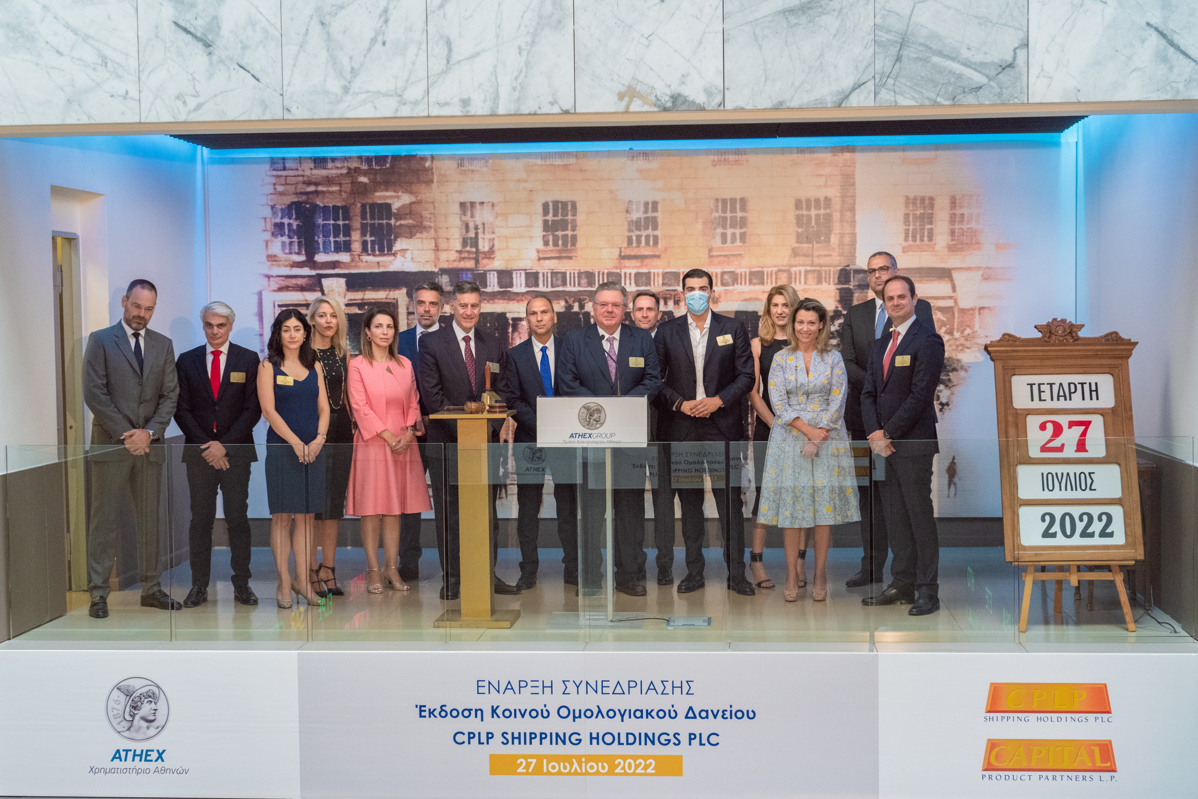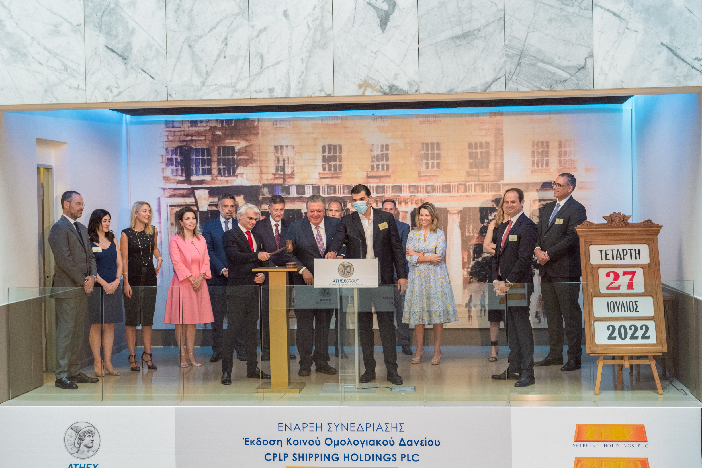 Tο Χρηματιστήριο Αθηνών υποδέχθηκε σήμερα την εταιρεία CPLP Shipping Holdings PLC, με αφορμή την εισαγωγή προς διαπραγμάτευση στην Οργανωμένη Αγορά του Χρηματιστηρίου Αθηνών του δεύτερου εταιρικού της ομολόγου.