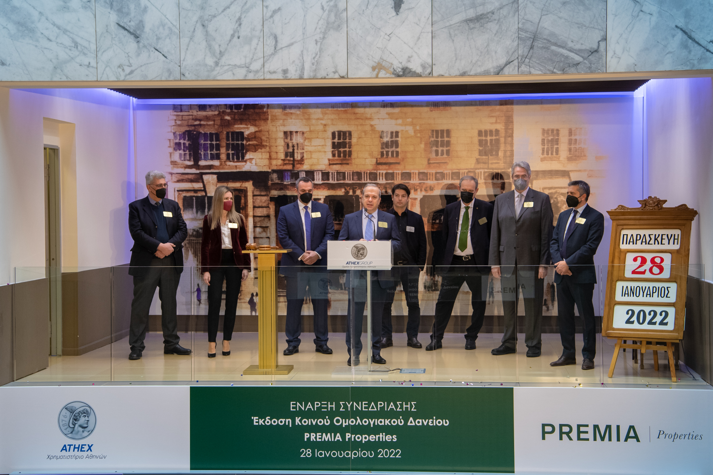Το Χρηματιστήριο Αθηνών υποδέχθηκε σήμερα μέλη της Διοίκησης και στελέχη της εταιρείας Premia Properties ΑΕ, με αφορμή την εισαγωγή προς διαπραγμάτευση στην Οργανωμένη Αγορά του Χρηματιστηρίου Αθηνών του πρώτου εταιρικού της ομολόγου.