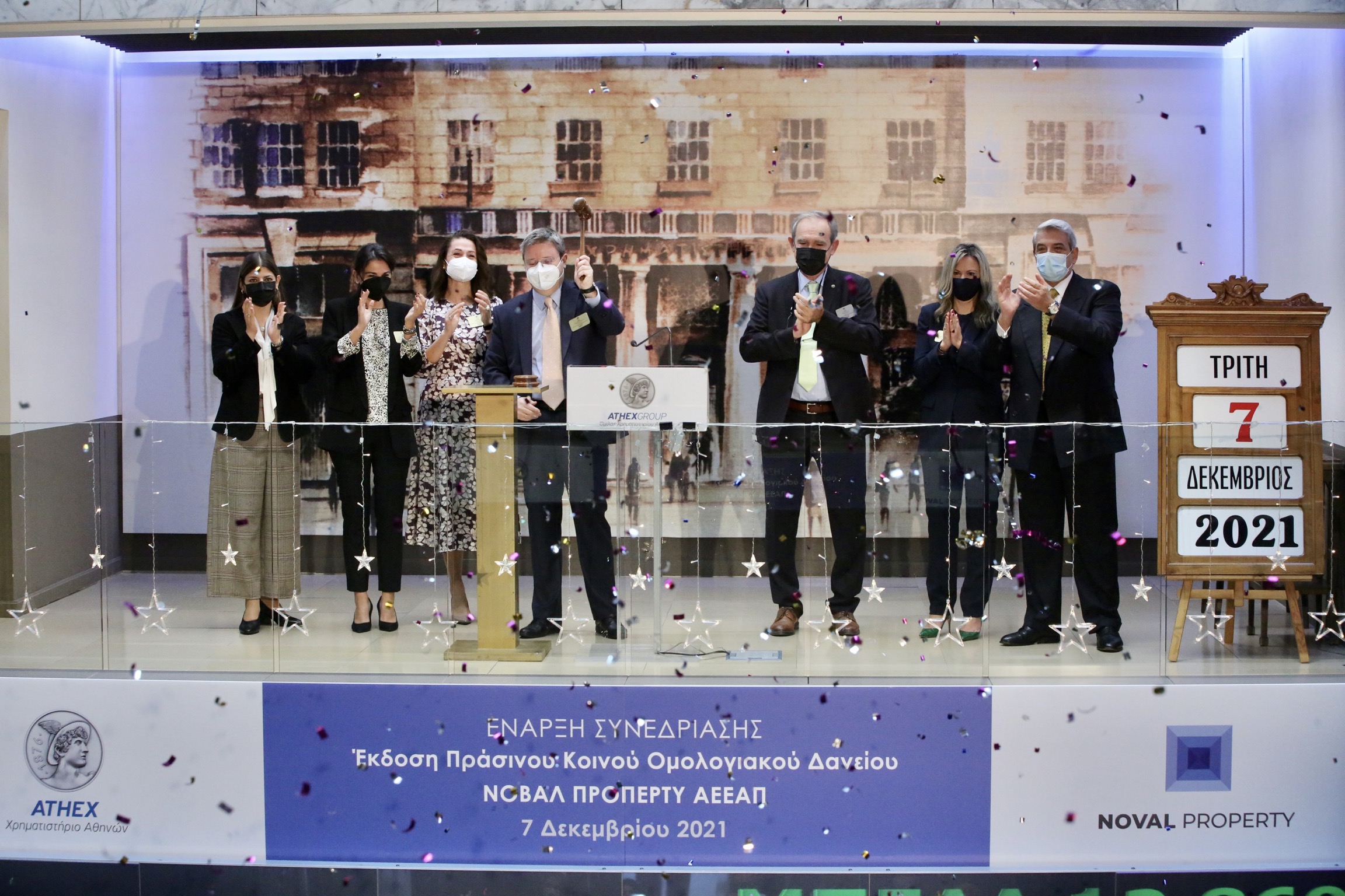 Υποδεχόμενος τους εκπροσώπους της εταιρείας, ο Διευθύνων Σύμβουλος του Ομίλου Χρηματιστηρίου Αθηνών Σωκράτης Λαζαρίδης, «καλωσορίζοντας» την ομολογιακή έκδοση της Noval Property ΑΕEΑΠ στην χρηματιστηριακή αγορά του ΑΤΗΕΧ, συνεχάρη την Διοίκηση, τους αναδόχους αλλά και όλους όσους συνετέλεσαν στην επιτυχή έκδοση ενός ακόμη πράσινου ομολόγου και ευχήθηκε σύντομα οι μετοχές της εταιρίας να βρεθούν στο ταμπλό της ελληνικής χρηματιστηριακής αγοράς.