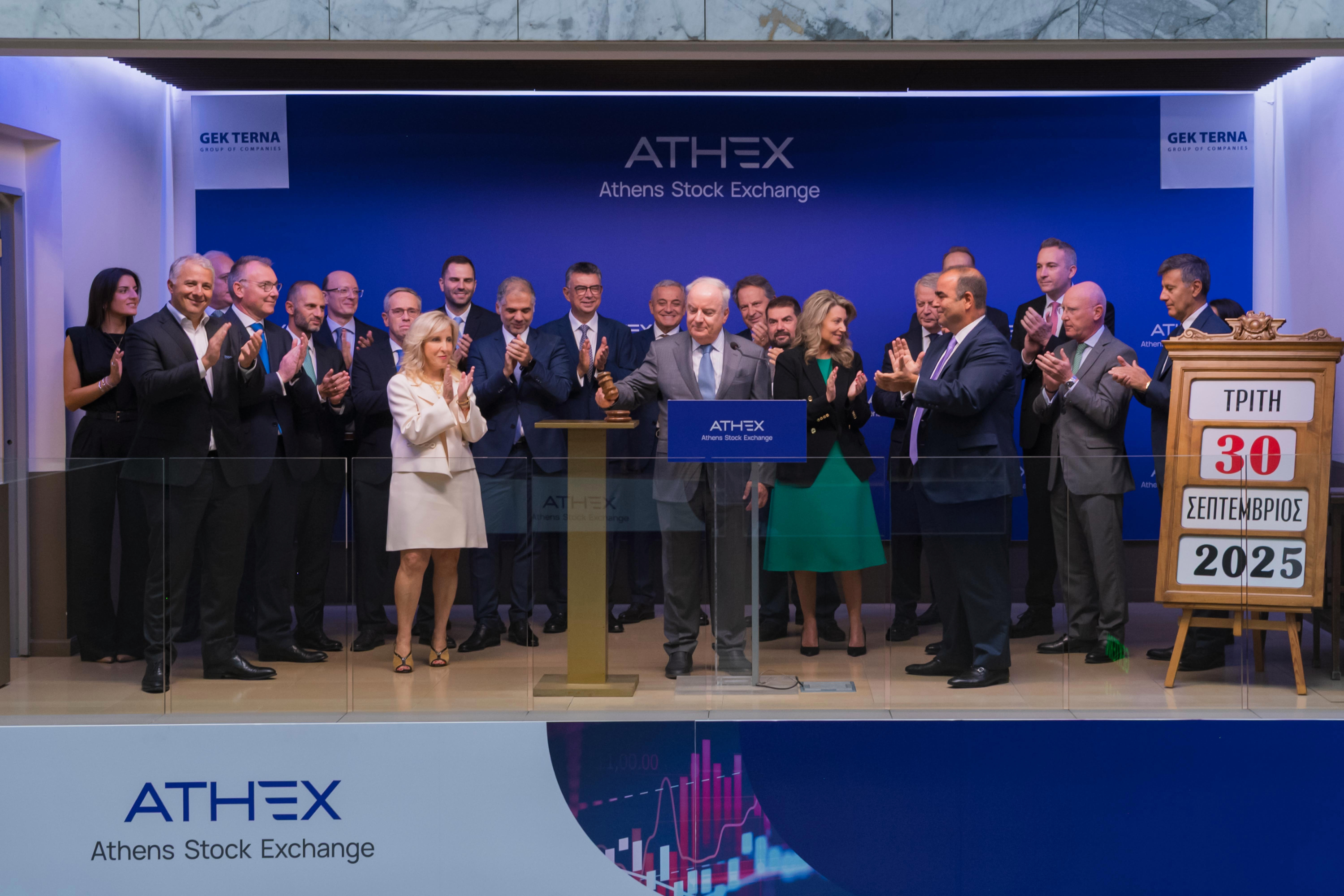 Υποδεχόμενος τους προσκεκλημένους, ο Διευθύνων Σύμβουλος του Ομίλου Χρηματιστηρίου Αθηνών κ. Γιάννος Κοντόπουλος αναφέρθηκε στη σημαντική υπερκάλυψη της δημόσιας προσφοράς, στοιχείο που αποτυπώνει την εμπιστοσύνη των επενδυτών στην εταιρεία και τις προοπτικές της, προσθέτοντας: «Η ΓΕΚ ΤΕΡΝΑ είναι εισηγμένη στο Χρηματιστήριο Αθηνών από το 1969 και αποτελεί παράδειγμα εταιρείας που με συνέπεια αξιοποιεί τις δυνατότητες χρηματοδότησης που παρέχει η κεφαλαιαγορά, έχοντας αντλήσει συνολικά από το 1999 κεφάλαια 1,64 δισ. ευρώ μέσω έκδοσης νέων μετοχών ή ομολογιών. Σε ό,τι αφορά στις ομολογιακές εκδόσεις, η ΓΕΚ ΤΕΡΝΑ έχει προχωρήσει έως σήμερα στην έκδοση 4 ομολόγων, συνολικής αξίας 1,64 δισ. ευρώ. Συγχαίρουμε τη Διοίκηση της ΓΕΚ ΤΕΡΝΑ για αυτή την ιδιαίτερα επιτυχημένη έκδοση και υπενθυμίζουμε πως το Χρηματιστήριο Αθηνών θα βρίσκεται πάντα δίπλα σε κάθε αναπτυξιακό βήμα των εταιρειών του».
