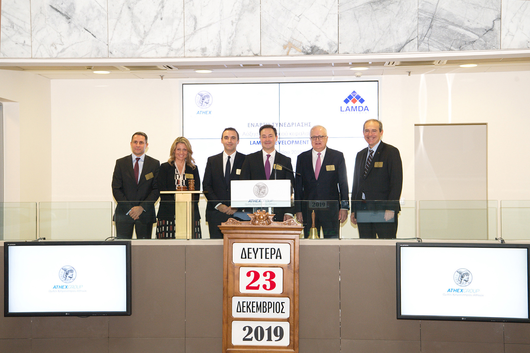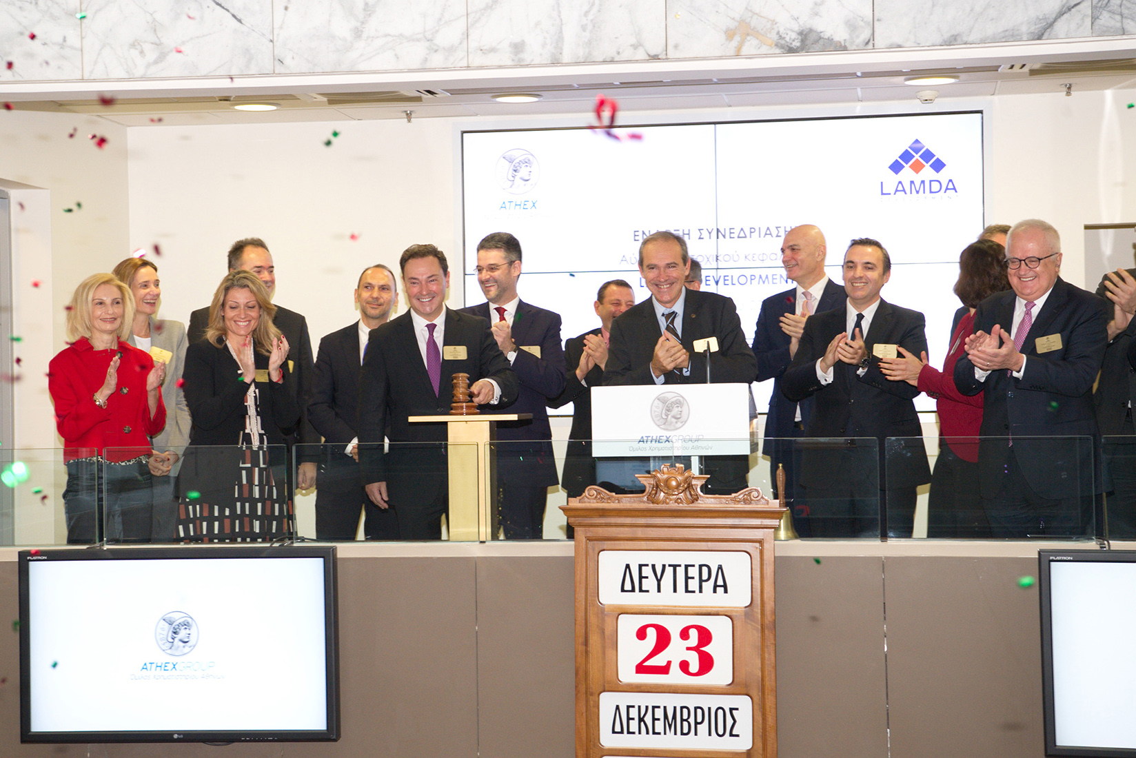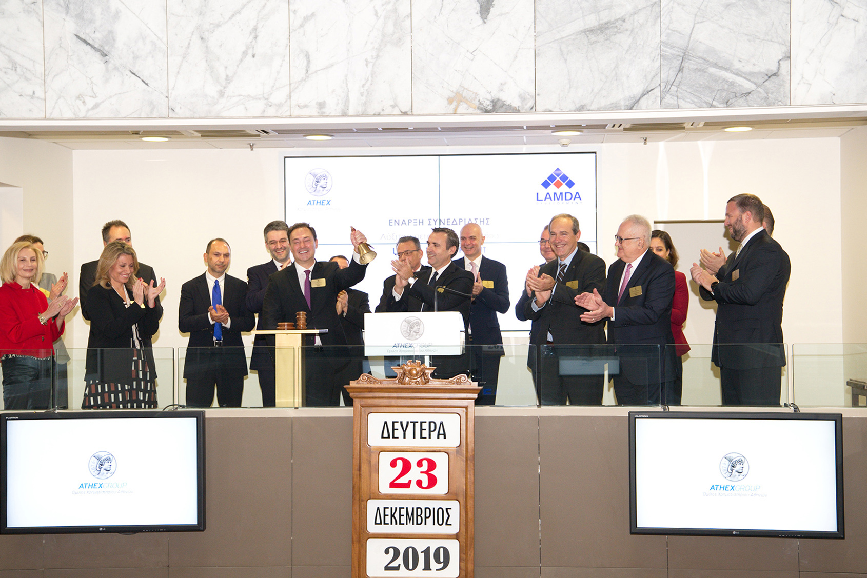 Το παραδοσιακό καμπανάκι έναρξης της συνεδρίασης του Χρηματιστηρίου Αθηνών χτύπησε ο κ. Οδυσσέας Αθανασίου Διευθύνων Σύμβουλος της Lamda Development.