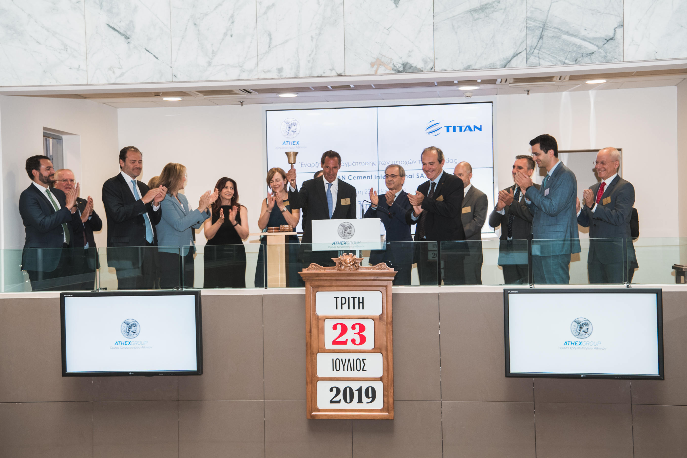 Το Χρηματιστήριο Αθηνών, με τη διοργάνωση τελετής Έναρξης της συνεδρίασης, υποδέχθηκε την TITAN Cement International S.A. στο πλαίσιο της έναρξης διαπραγμάτευσης των μετοχών της, στην Κύρια Αγορά του Χρηματιστηρίου.