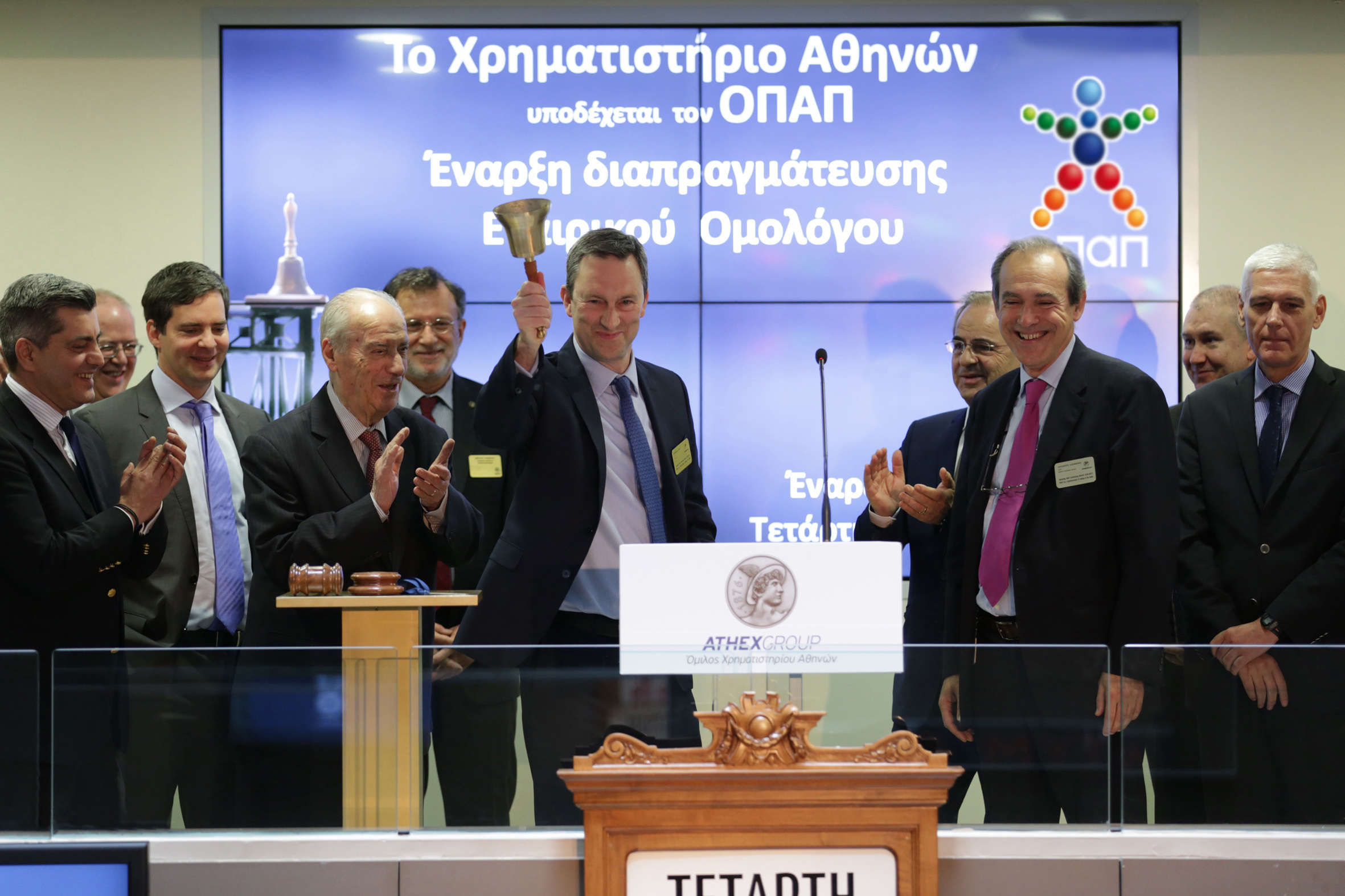 Με την ευκαιρία της εισαγωγής προς διαπραγμάτευση των ομολογιών της εταιρείας, ο Διευθύνων Σύμβουλος του Χρηματιστηρίου Αθηνών κ. Σωκράτης Λαζαρίδης, μεταξύ άλλων τόνισε: «Ευχαριστώ τη Διοίκηση του ΟΠΑΠ που είναι σήμερα εδώ μαζί μας με αφορμή την έναρξη διαπραγμάτευσης του εταιρικού ομολόγου που εξέδωσε αλλά κυρίως για την ευκαιρία που έδωσε στην ελληνική κεφαλαιαγορά, να καταδείξει ότι λειτουργώντας συλλογικά, το δίκτυο της έχει απεριόριστες δυνατότητες για άντληση κεφαλαίων εφόσον το προσφερόμενο προϊόν αξιοποιεί τις προσφερόμενες υποδομές και κυρίως τις δεξιότητες του οικοσυστήματος του».