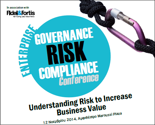 | 12/11/2014 | Η Boussias Communications σε συνεργασία με την Fidel & Fortis διοργάνωσαν για πρώτη φορά το Συνέδριο Enterprise Governance, Risk & Compliance με στόχο να αναδείξει το ρόλο και τη σημασία του τρίπτυχου αυτού στη λειτουργία της σημερινής επιχείρησης. Μεταξύ των υποστηρικτών του Συνεδρίου ήταν και το Ελληνικό Συμβούλιο Εταιρικής Διακυβέρνησης. (Παρουσίαση - Λήδα Κοντογιάννη) (Πρόγραμμα) (Ομιλητές) (Venue) (Website) |
