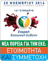 | 20/11/2014 | Το Ελληνο-Αμερικανικό Εμπορικό Επιμελητήριο , σε συνεργασία με την Επιτροπή Εταιρικής Κοινωνικής Ευθύνης του , διοργάνωσε το 12ο ετήσιο συνέδριο Εταιρικής Κοινωνικής Ευθύνης στο Athens Ledra Hotel. (Πρόγραμμα) (Website) |