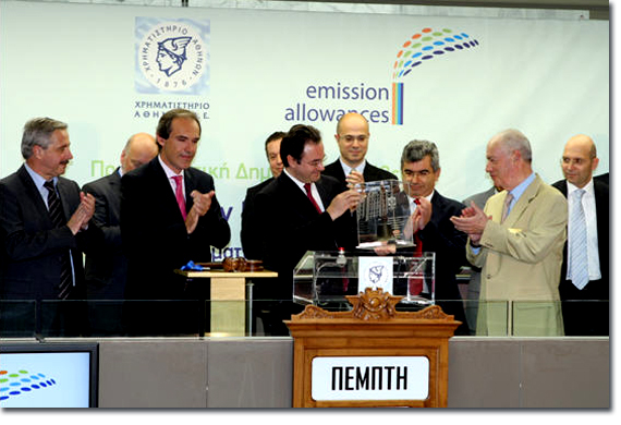 Ο Πρόεδρος του Χρηματιστηρίου Αθηνών, κύριος Σωκράτης Λαζαρίδης, κατά τη διάρκεια της εκδήλωσης είπε μεταξύ άλλων: «Η επέκταση των δραστηριοτήτων των Χρηματιστήριων, με την εισαγωγή προς διαπραγμάτευση νέων προϊόντων και τη δημιουργία νέων αγορών, βοηθούν στο να αναδεικνύουν το ρόλο τους στην λειτουργία των διεθνών οικονομιών. Το ελληνικό Χρηματιστήριο ακολουθώντας πιστά τις εξελίξεις προσφέρει την απαραίτητη υλικοτεχνική υποδομή, προκειμένου να εξυπηρετήσει την εκποίηση των αδιανέμητων δικαιωμάτων εκπομπών αερίων θερμοκηπίου που το ΥΠ.ΕΚΑ έχει στην κατοχή του. Με την τιμή που μας κάνει το ΥΠΕΚΑ να εμπιστευτεί την αγορά μας αλλά και με την ουσιαστική υποστήριξη των Μελών μας πιστεύουμε ότι η δυνατότητα διεύρυνσης της γκάμας των επενδυτικών επιλογών που δίνουμε με την ενέργεια αυτή, θα είναι επιτυχής και θα δημιουργήσει τις προϋποθέσεις για μια καινούργια αγορά»