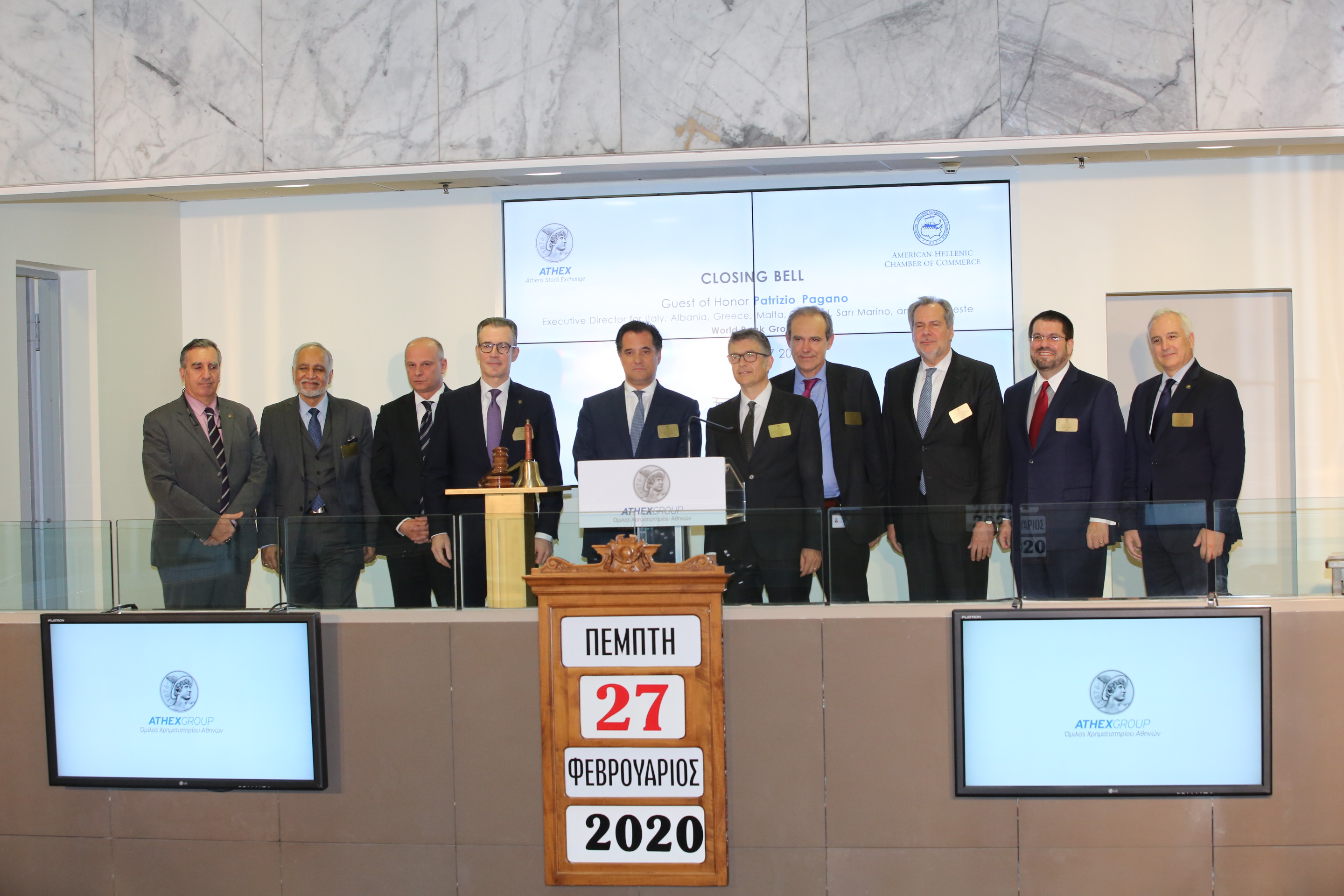 Ο κ. Pagano μίλησε για τον ρόλο της Παγκόσμιας Τράπεζας στο μεταβαλλόμενο χρηματοοικονομικό περιβάλλον και χτύπησε το παραδοσιακού κουδούνι λήξης της συνεδρίασης.