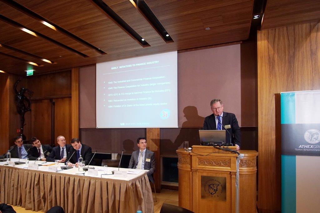 Στη συζήτηση που ακολούθησε συμμετείχαν ο κος Russell Healey - Partner, Foresight Group, ο κος John Newlands - Head of Investment Companies Research, Brewin Dolphin Limited, ο κος Nicola Redi, Ph.D - Investment Director, Vertis SGR S.p.A. και ο κος Hannes Takacs - Associate Director, Local Currency and Capital Markets Development (LC2), EBRD. Το θέμα της συζήτησης ήταν: «Η χρήση των Listed Private Equity/Listed Funds και των Ομολόγων Έργων στη χρηματοδότηση Μικρομεσαίων Επιχειρήσεων και Έργων». Συντονιστής στη συζήτηση ήταν ο κος Νίκος Πορφύρης, Αναπληρωτής Επιτελικός Διευθυντής Λειτουργιών του Χρηματιστηρίου Αθηνών.
