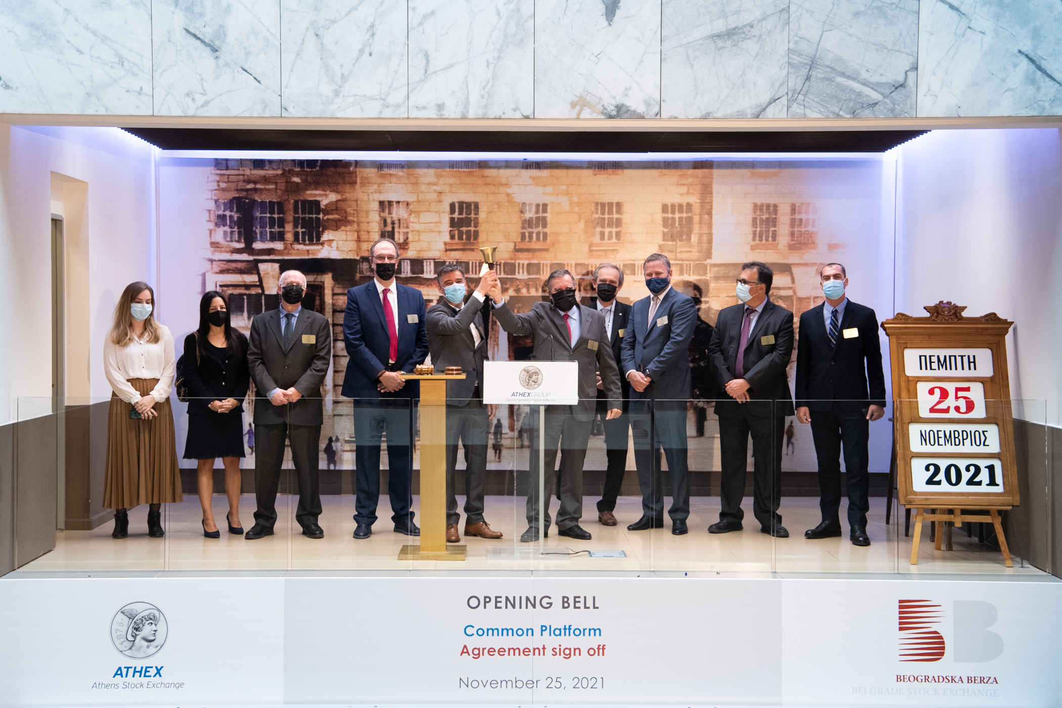 Υπεγράφη σήμερα, 25 Νοεμβρίου 2021, η Συμφωνία παροχής Συστημάτων και Υπηρεσιών με το Χρηματιστήριο Αξιών Βελιγραδίου (BELEX), που συνεπάγεται την μετάβαση της συναλλακτικής δραστηριότητάς του ως Λειτουργός της Αγοράς στην πλατφόρμα συναλλαγών του Χρηματιστηρίου Αθηνών (ΑΤΗΕΧ).