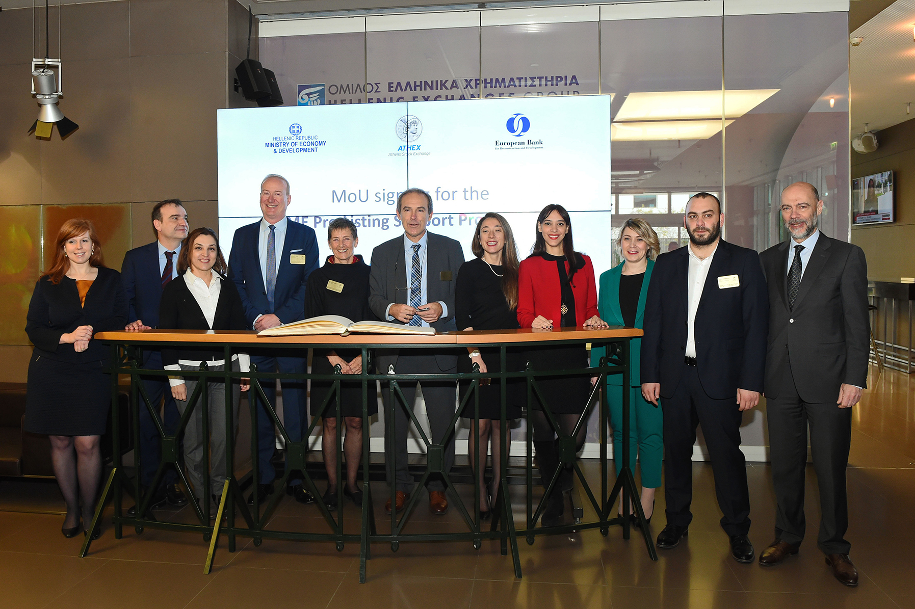 Η υπογραφή του μνημονίου πραγματοποιήθηκε παρουσία του κ. Ηλία Ξανθάκου, Γενικού Γραμματέα του Υπουργείου Οικονομίας και Ανάπτυξης, του κ. Σωκράτη Λαζαρίδη, Διευθύνοντος Συμβούλου του Χρηματιστηρίου Αθηνών και της κας Sabina Dziurman, Επικεφαλής της ΕBRD για την Ελλάδα και την Κύπρο.