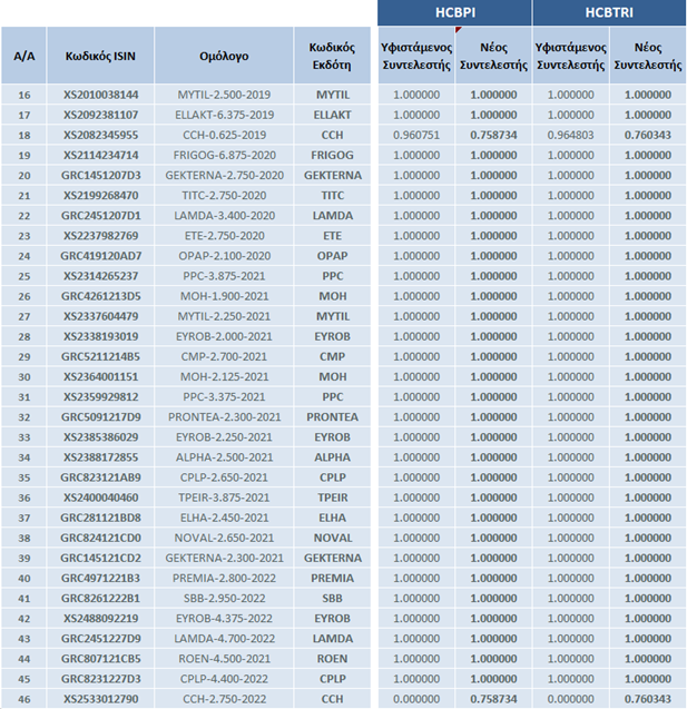 | Αλλαγές στη Σύνθεση των Δεικτών Ελληνικών Εταιρικών Ομολόγων | |||