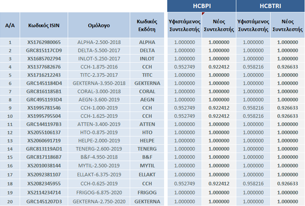 | Αλλαγές στη Σύνθεση των Δεικτών Ελληνικών Εταιρικών Ομολόγων | |||