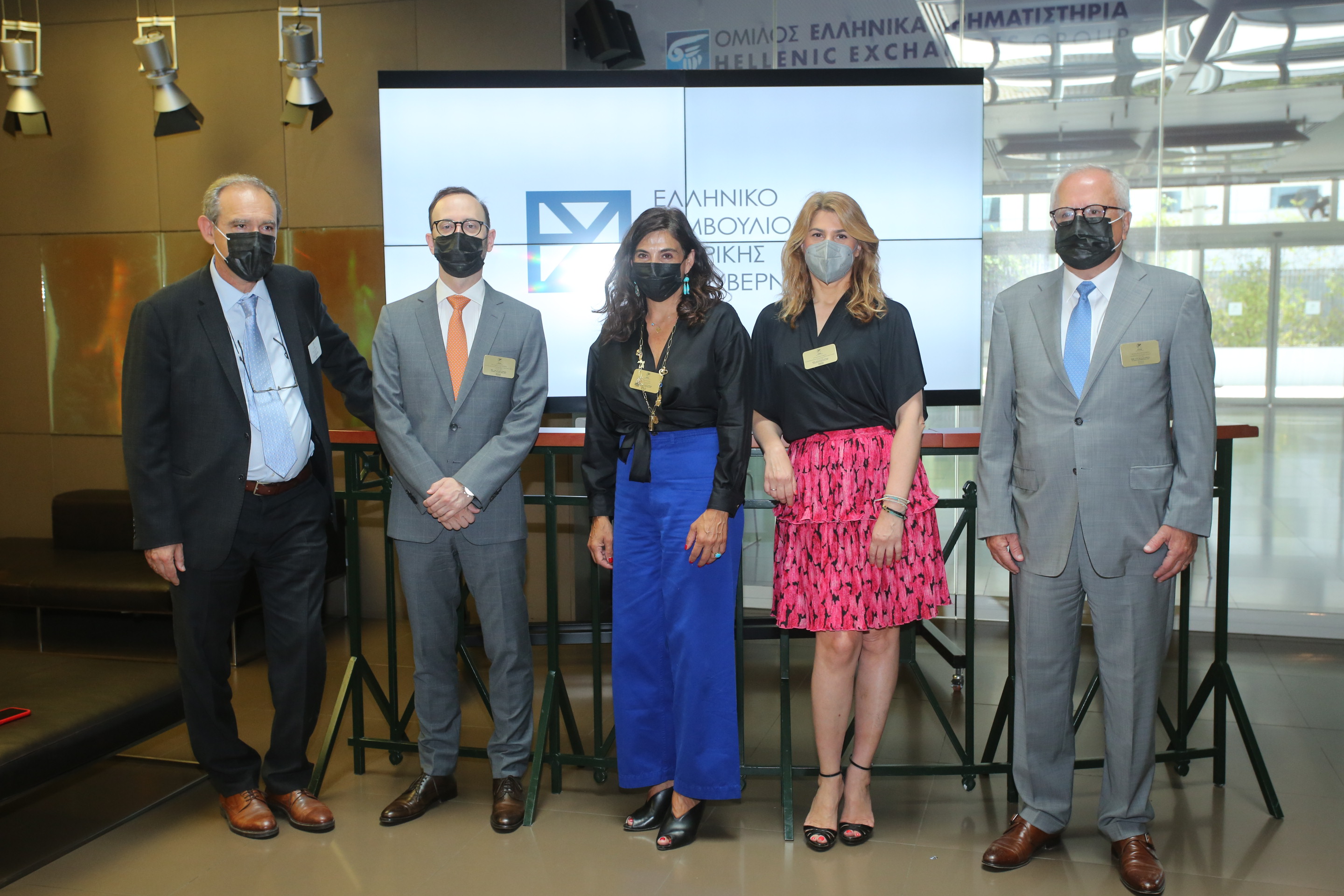 Με αφορμή την έκδοση του Αναθεωρημένου Ελληνικού Κώδικα Εταιρικής Διακυβέρνησης 2021 από το ΕΣΕΔ, Ο Διευθύνων Σύμβουλος του Ομίλου Χρηματιστηρίου Αθηνών Σωκράτης Λαζαρίδης υποδέχτηκε τα Μέλη του Συμβουλίου Διοίκησης και του 15μελούς Συμβουλίου Εταιρικής Διακυβέρνησης του ΕΣΕΔ. Η Αντιπρόεδρος του ΕΣΕΔ κα. Ξένια Καζόλη εν απουσία του κου. George Serafeim, Προέδρου του ΕΣΕΔ , χτύπησε το παραδοσιακό καμπανάκι έναρξης της συνεδρίασης της 6ης Ιουλίου 2021.