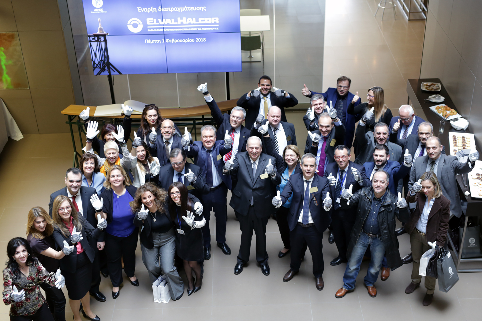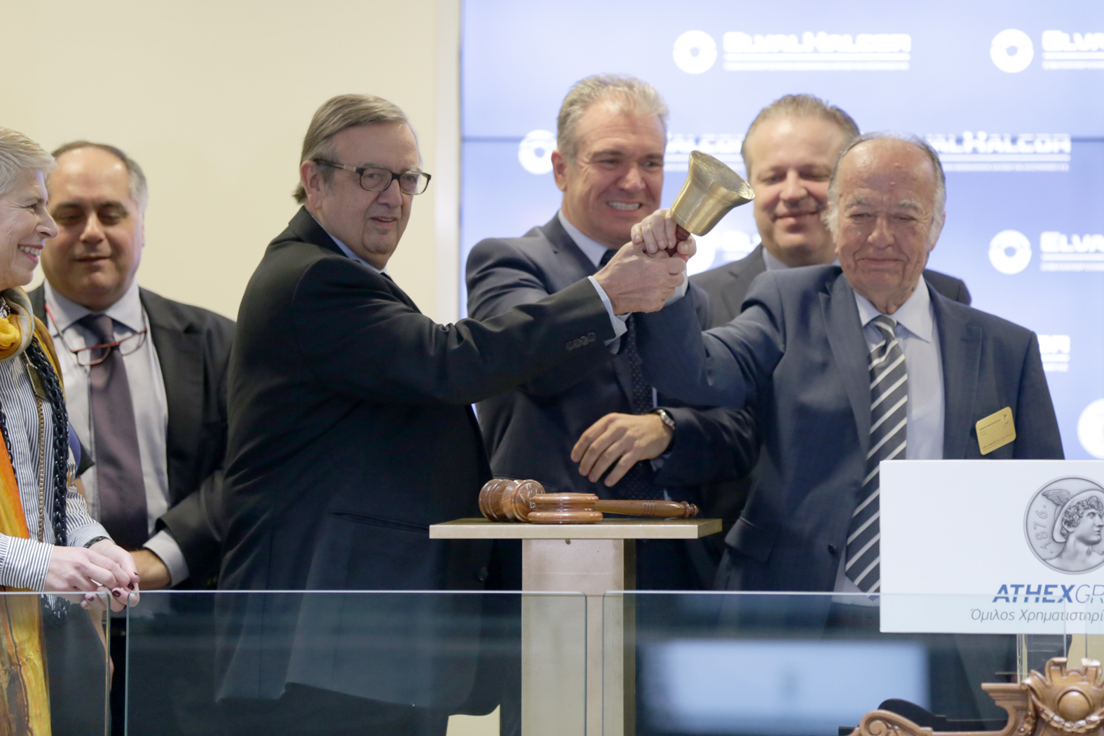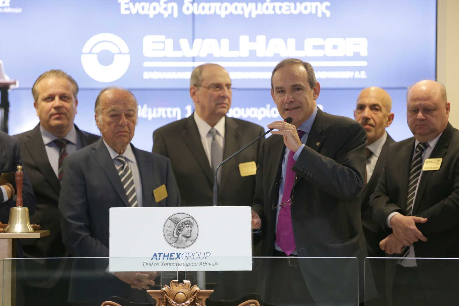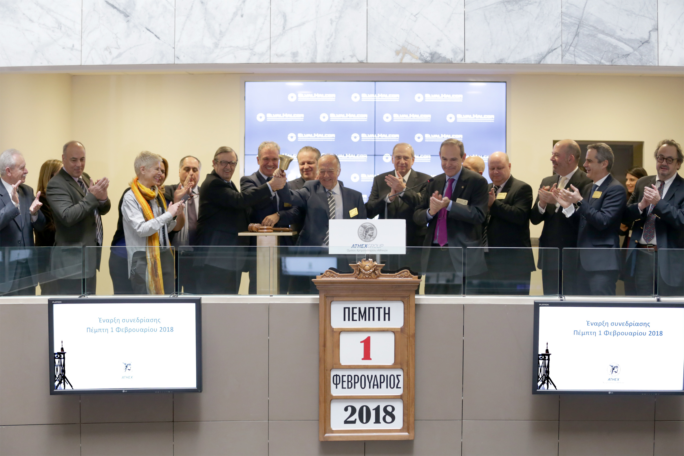 Η επίσημη έναρξη της σημερινής συνεδρίασης του Χρηματιστηρίου Αθηνών έγινε από τον κ. Παπαγεωργόπουλο Θεοδόσιο, Πρόεδρο ΔΣ, τον κ. Λάμπρο Βαρούχα, Γενικό Διευθυντή Τομέα Έλασης Αλουμινίου, ΕΛΒΑΛΧΑΛΚΟΡ και τον κ. Περικλή Σαπουντζή, Γενικό Διευθυντή Τομέα Σωλήνων Χαλκού, ΕΛΒΑΛΧΑΛΚΟΡ.