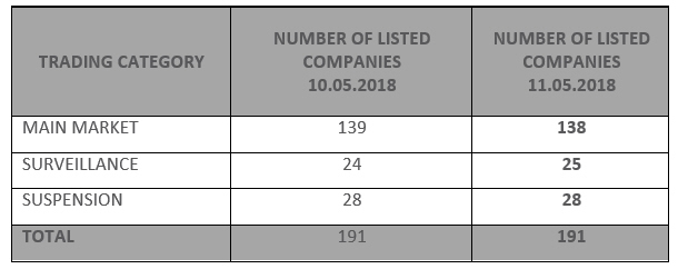 The total number of companies listed per Trading Category appears in the table below: