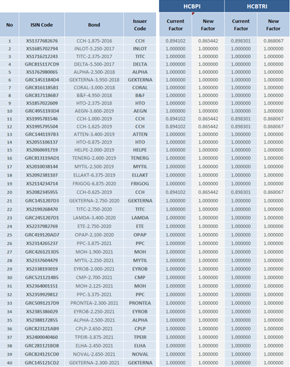 | Changes in the Composition of Hellenic Corporate Bond Indices | |||